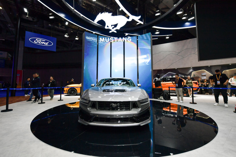 这是2023年11月6日在第六届进博会汽车展区福特汽车展台拍摄的跑车。新华社记者 孟涛 摄