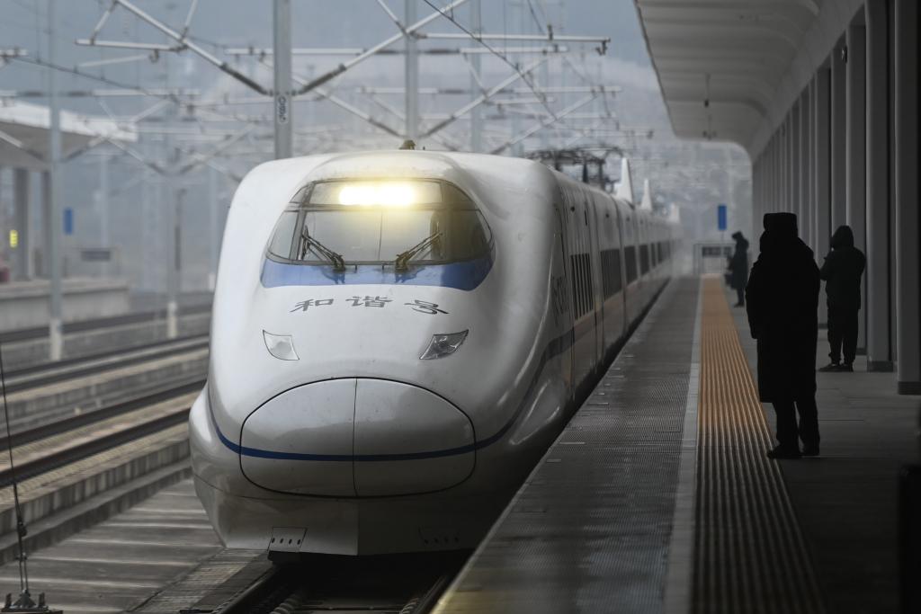 1月8日,列车驶入绍兴嵊州新昌站。新华社记者黄宗治 摄