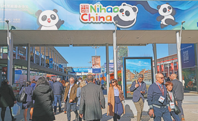 在会展中心外侧主通道的显著位置,印有“你好!中国”国家旅游形象图案的广告牌引人注目。在6号馆的中心位置,以“你好!中国”旅游形象为主视觉区的中国展台前围满了前来咨询的观众。中国展台总面积为130平方米,由来自中国多个省市、航空公司以及旅游企业的12个展位组成,展示了丰富多彩的中国旅游产品和旅行线路。