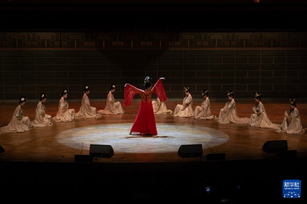 1月28日,由中国驻瑞典大使馆主办、斯德哥尔摩中国文化中心和中国歌剧舞剧院承办的“祥龙献瑞 共庆新春”迎春晚会在瑞典首都斯德哥尔摩举办。这是群舞表演《清平调》。新华社发(魏学超摄)