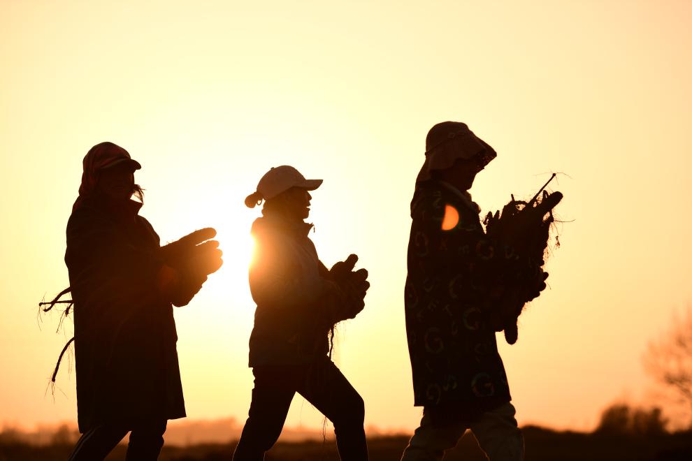 2023年11月12日,在鄂托克前旗城川镇章昂希里村的沙地农田,农民采收白玉山药。(新华社发,王正摄)