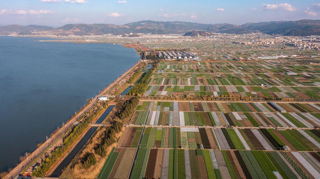 这是云南省玉溪市通海县的田园风光(无人机照片,2023年2月7日摄)。新华社记者 胡超 摄