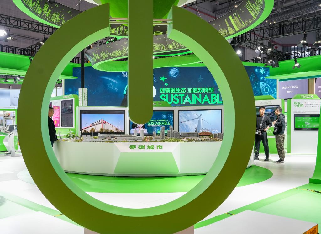 这是第六届中国国际进口博览会施耐德电气展台展出的“零碳城市”愿景模型。