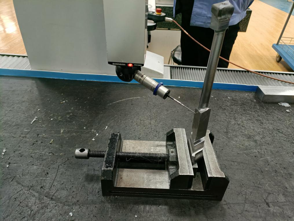 在哈电集团汽轮机公司叶片分厂精密测量室,三坐标测量机正在进行测量。新华社记者朱悦 摄