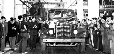 1956年,第一辆解放牌卡车驶下装配线。 |