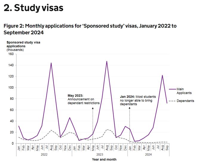内政部指出,签证申请的减少似乎与政策变化直接相关,在 2024 年 1 月至 9 月期间,来自学生家属的申请只有 1.78 万份,比前一年下降了 85% 。