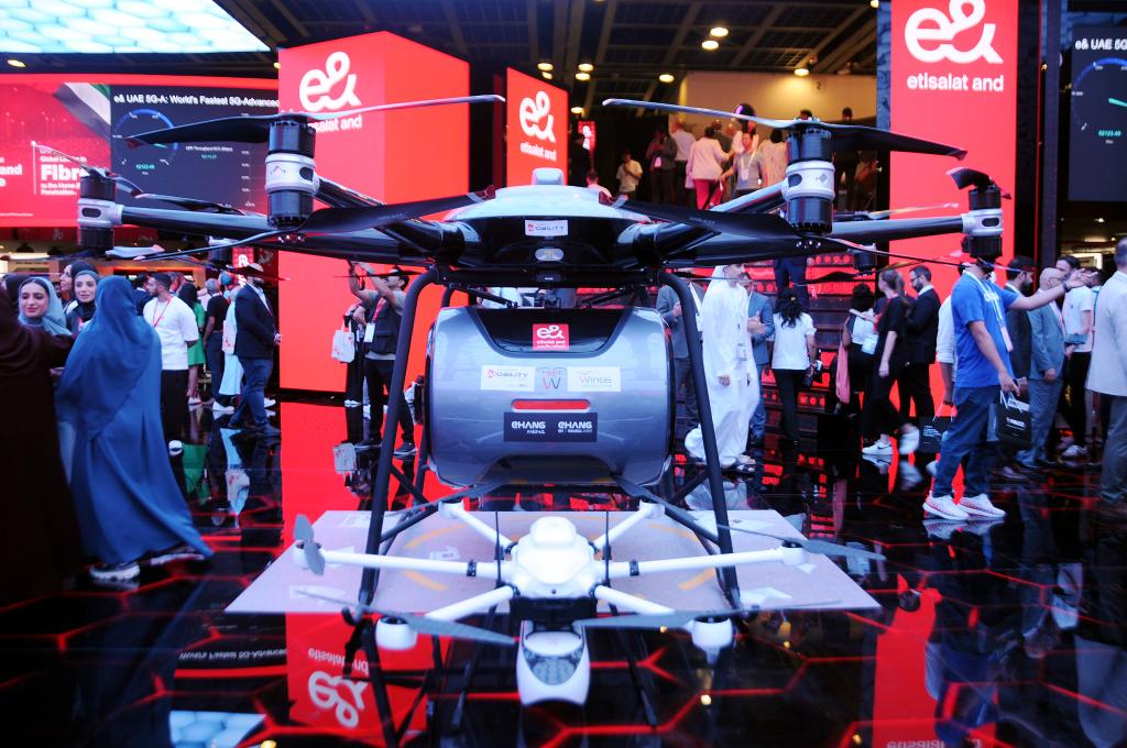 这是2024年10月17日在阿联酋迪拜第44届海湾信息和通信技术展现场拍摄的亿航智能无人驾驶航空器。新华社记者段敏夫摄
