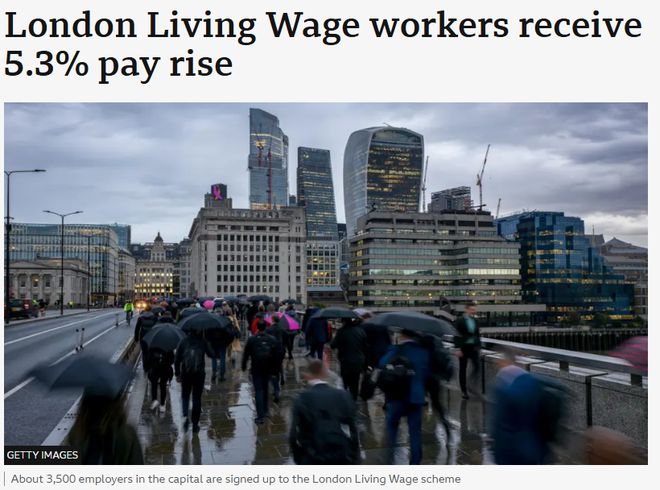 根据近日英国发布的数据表明,部分伦敦企业的最低生活工资已从每小时 £12.60 上调至 £13.85,涨幅达到 5.3%,超过 14 万名打工人将因此受益。