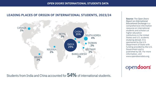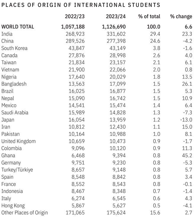 由此,印度成为美国最大的国际学生来源国,这是它自 2009 年来首次超越中国留学生总数。
