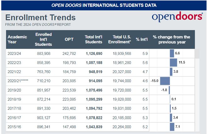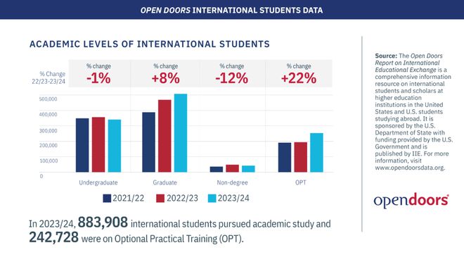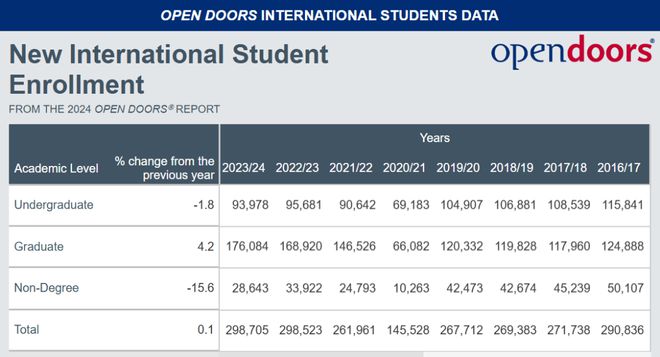 2024 年 11 月 18 日,美国门户开放报告(Open Doors Report)发布了 23-24 年度最新数据。
