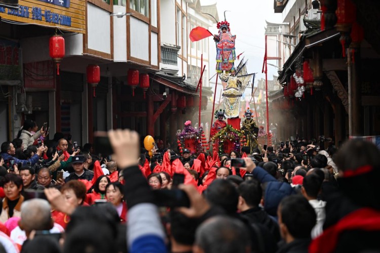 3月1日,以“游文昌盛会·赏九丝春韵”为主题的宜宾兴文县九丝城镇“二月二文昌会”非遗民俗活动在长征国家文化公园广场开幕。