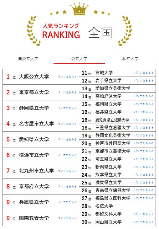 与上个月的排名相比,公立大学的前 30 名整体表现非常稳定,仅有熊本县立大学的排名发生了微小变动,从第23名下降至第 24 名。